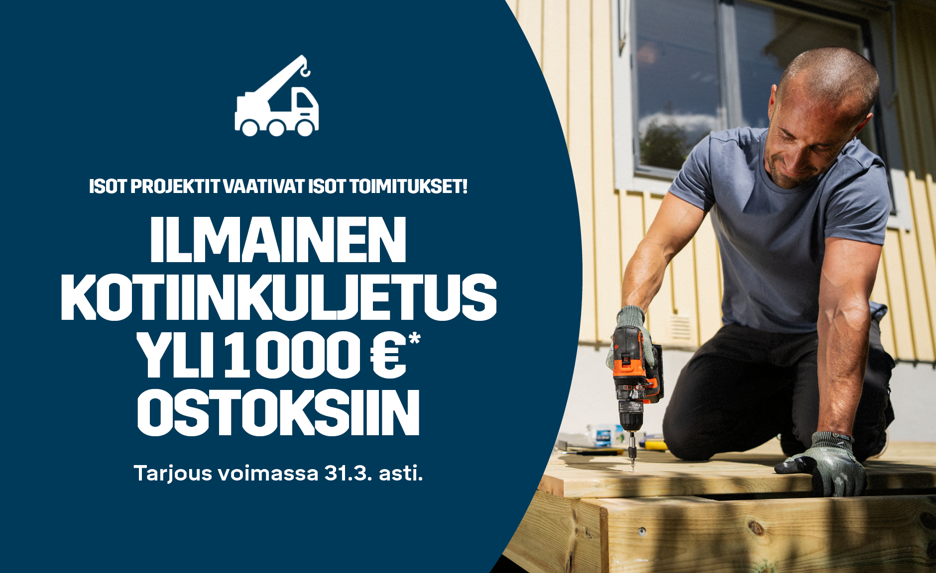 Planerar du ett större projekt? Vi bjuder vi på kostnaden för standardleverans när du handlar för minst 1 000 €. Ett smart sätt att få hem byggmaterialet!